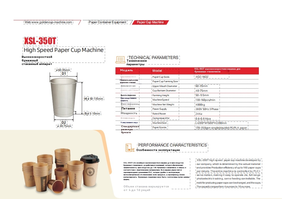 XSL-350T; Hochgeschwindigkeits-Pappbechermaschine